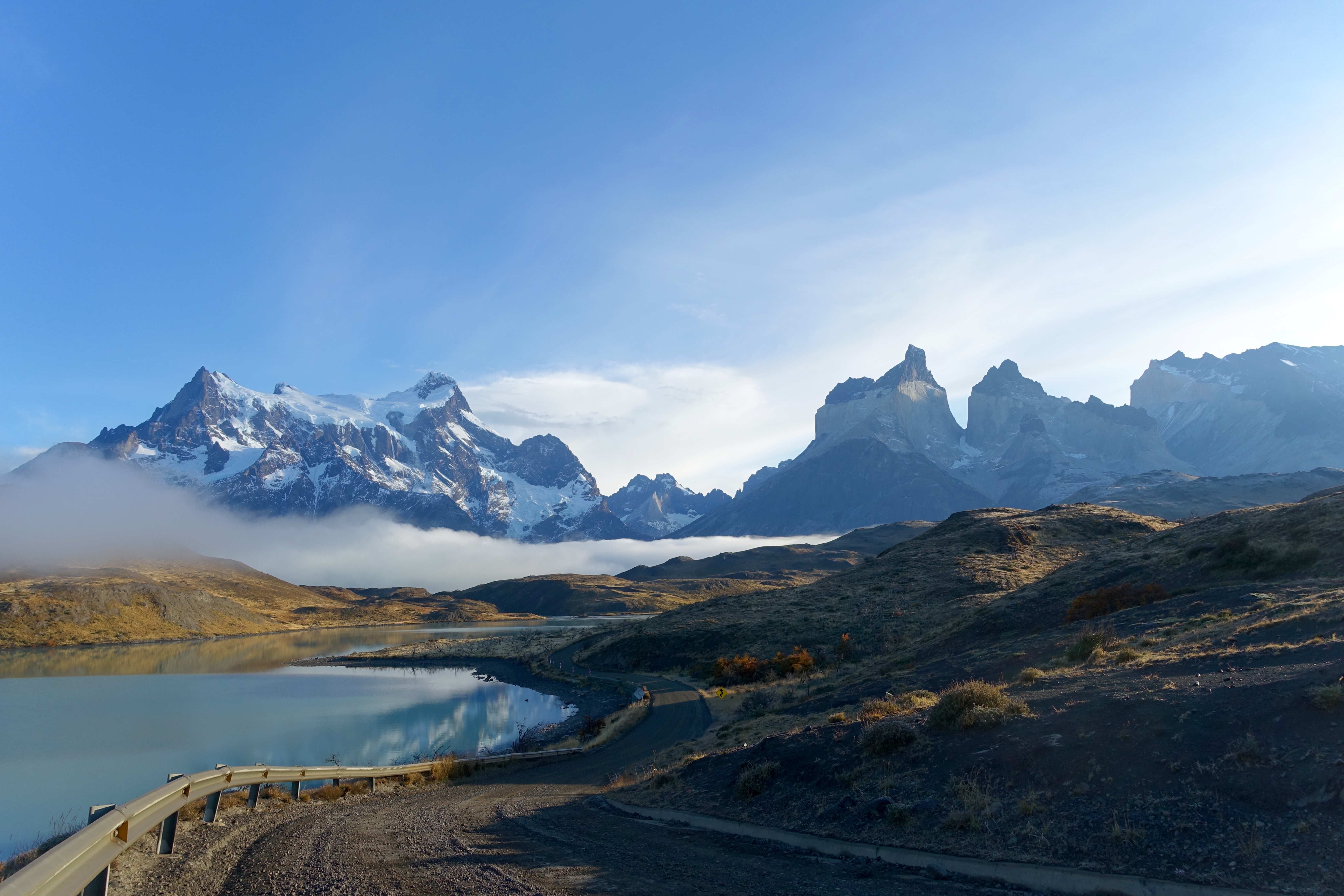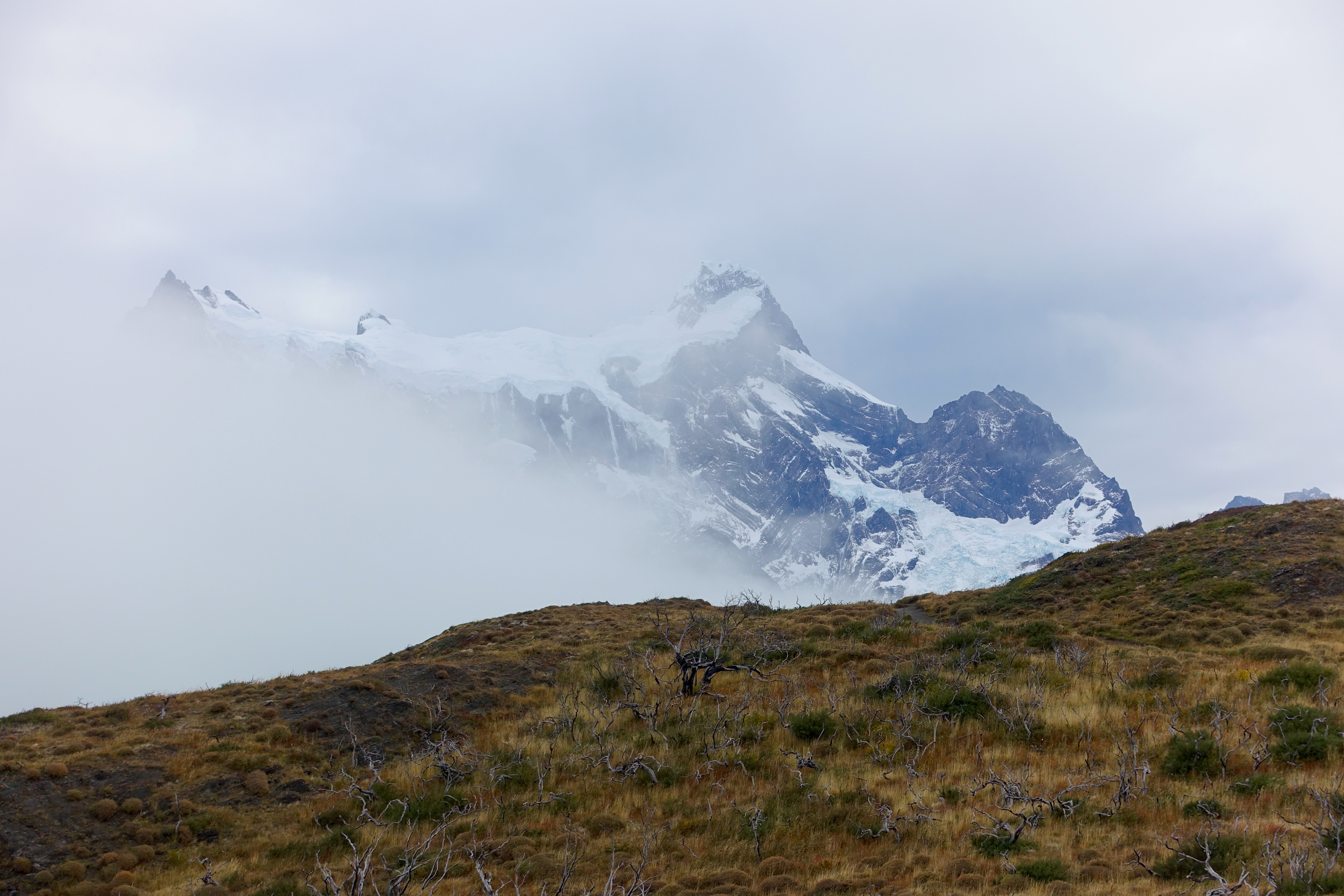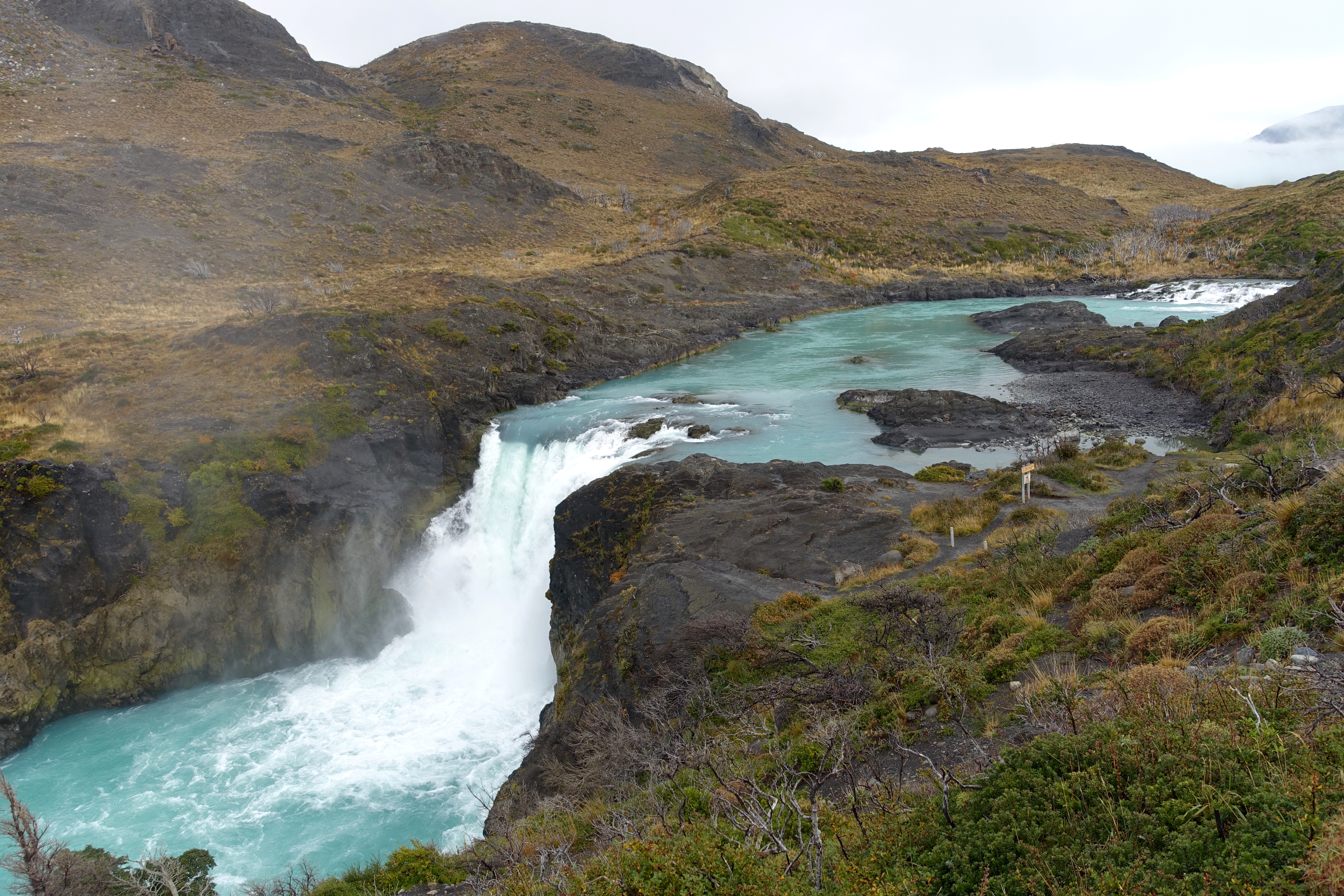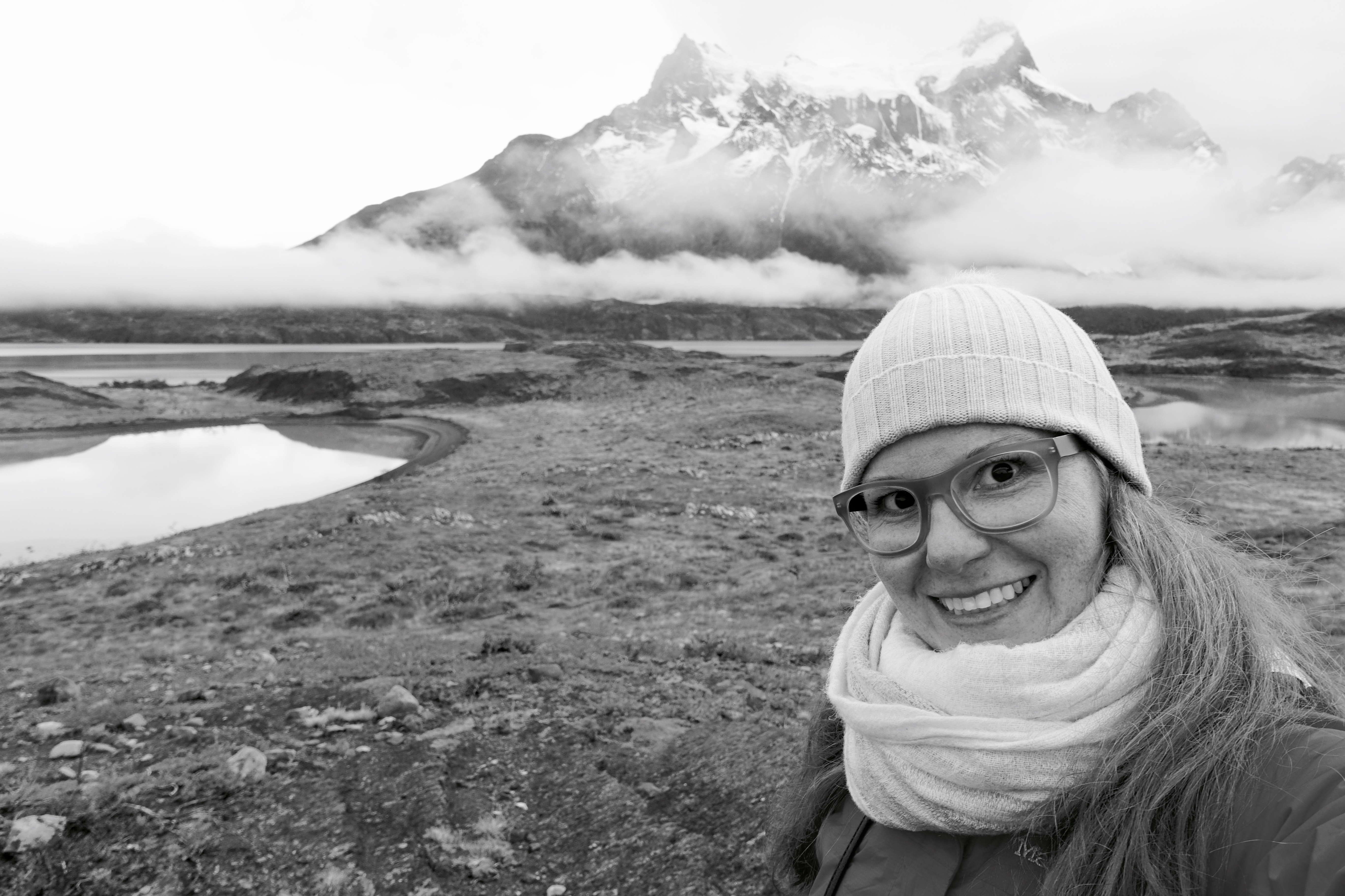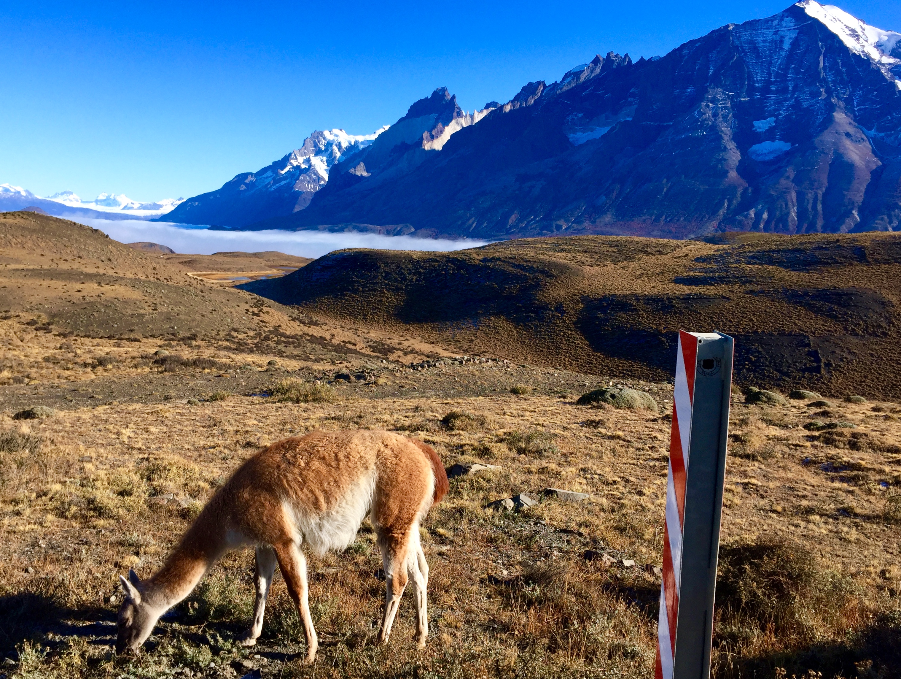 Even though it’s freezing cold (wintertime, at the bottom of the world, I guess it would be!) From Santiago (which is in the middle of Chile, north to south, it is over a three hour flight from Punta Arenas! Punta Arenas is the southernmost city in the world. From there, I stayed one night, and I had to take buses back north, to Puerto Natales, and then into Torres del Paine National Park. The buses were another full day of travel. Not easy to get to, but totally worth it. I was staying at a hotel inside the park, on Lake Pehoe (pronounced: pay-way). I should’ve rented a car because I didn’t get to see much of the park. Because it’s out of season, all of the tour operators are closed. So, I decided to do two different hikes that I could walk to from the hotel. One was called “Mirador Los Cuernos”, which included an impressive waterfall, and the other I can’t remember – it was something like “Condor’s Nest”. I will simply put post pictures – what a remarkable place☺️